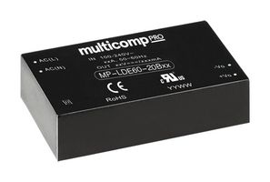 MULTICOMP PRO – MP-LDE60-20B24 – AC/DC PCB Mount Power Supply (PSU), 100 to 370VDC, 1 Output, 60 W, 24 VDC, 2.5 A